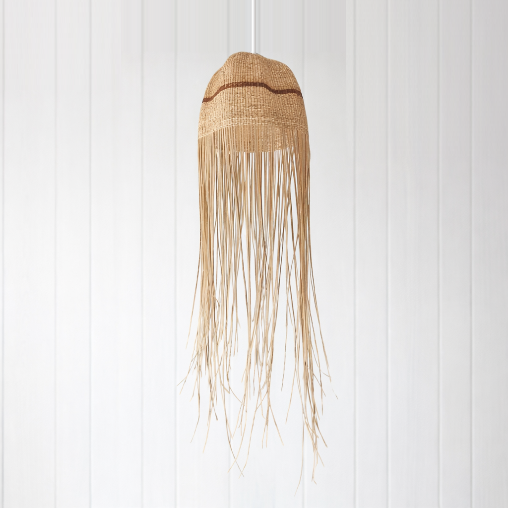 Delicately handcrafted with care and inspired by the graceful form of a drifting jellyfish, these luminous creations bring an ethereal elegance to your space. Each pendant is a harmonious blend of texture and movement, featuring flowing fringe details that evoke the gentle swaying of ocean life.