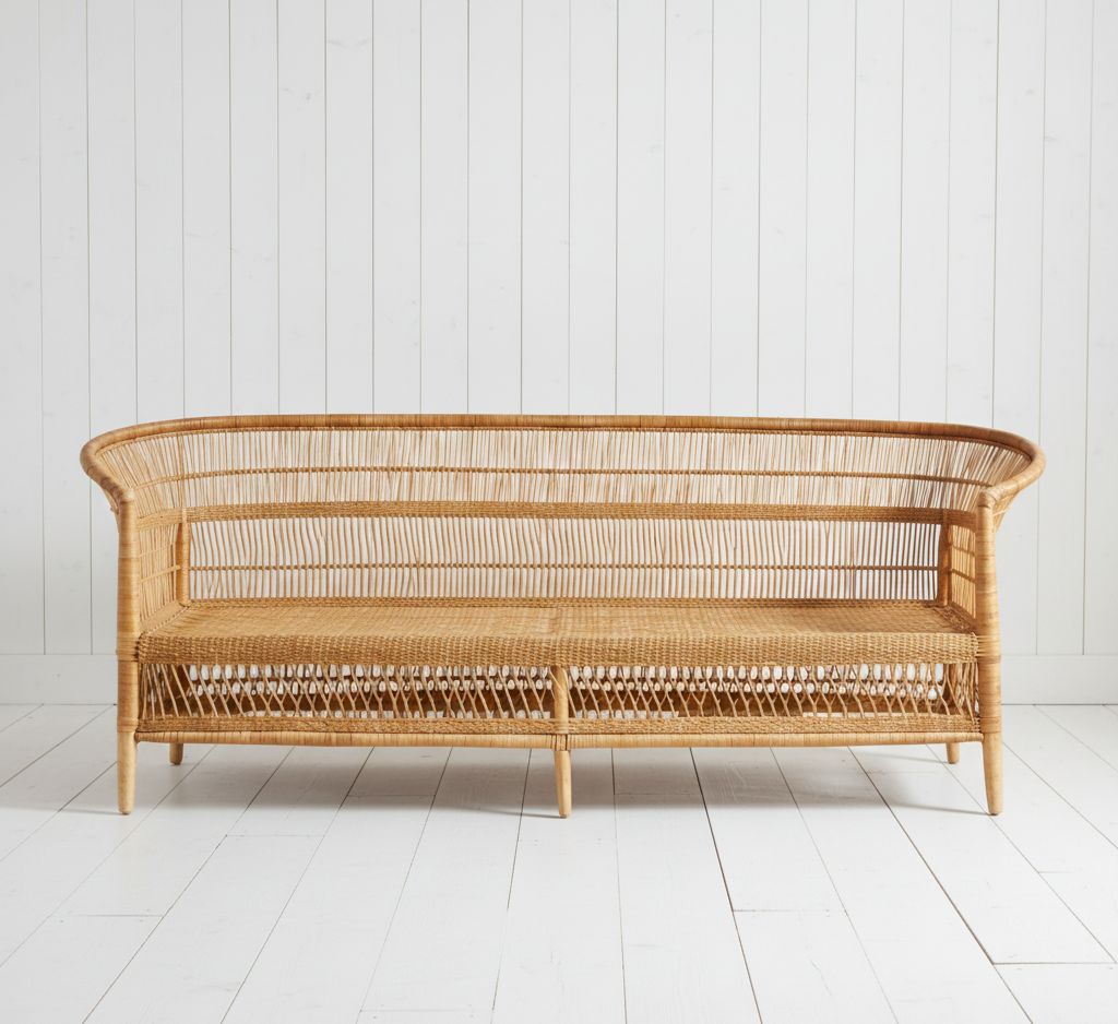 Traditional 4 Seater Malawi Chairs are handmade and boast a beautifully complex and intricate design of rattan strips ingeniously held together by unique knots instead of glue to create a one of a kind chair. Meticulously crafted with all-natural materials by our dedicated and talented craftsmen, each chair is carefully fumigated and pre-levelled to guarantee strong and sustainable furniture for you. The Traditional 3 Seater Malawi Chair is the perfect addition for indoor or outdoor seating while providing comfort and style with a touch of rustic elegance that will enhance any interior or exterior aesthetic.